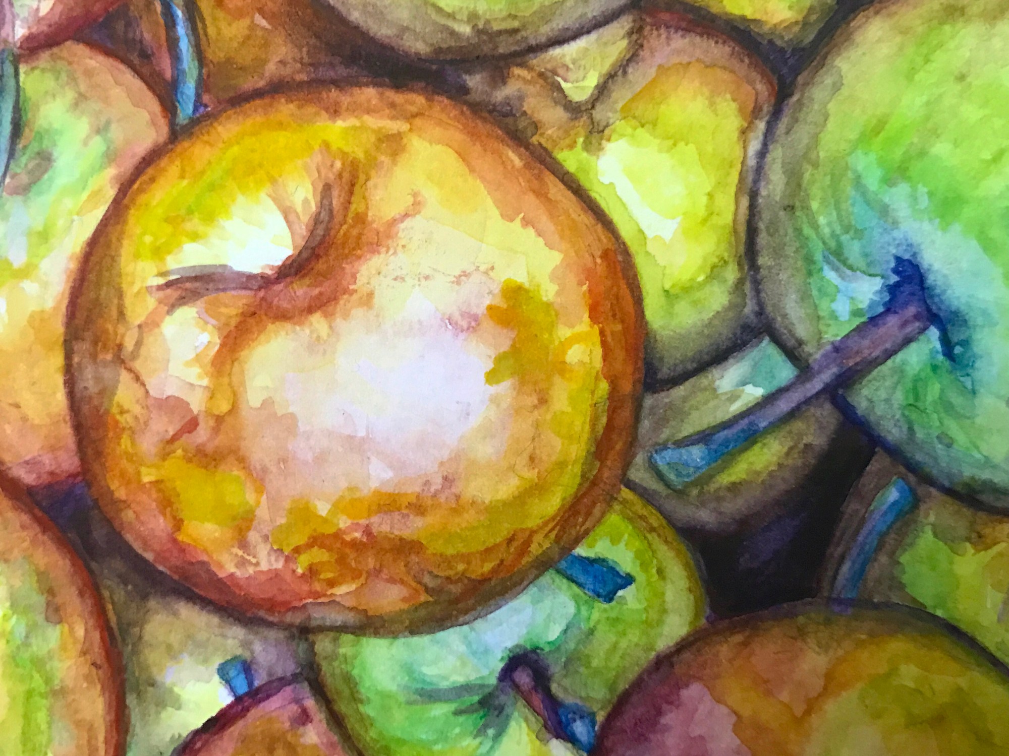 I finished this small watercolor painting this afternoon, which I had started almost a year ago and for some reason abandoned, most likely because life with the boys and their needs got in the way. Back when I was originally working on it, each time I showed someone my progress on the piece, I would undoubtedly get the same reaction…”what a gorgeous painting of apples.”